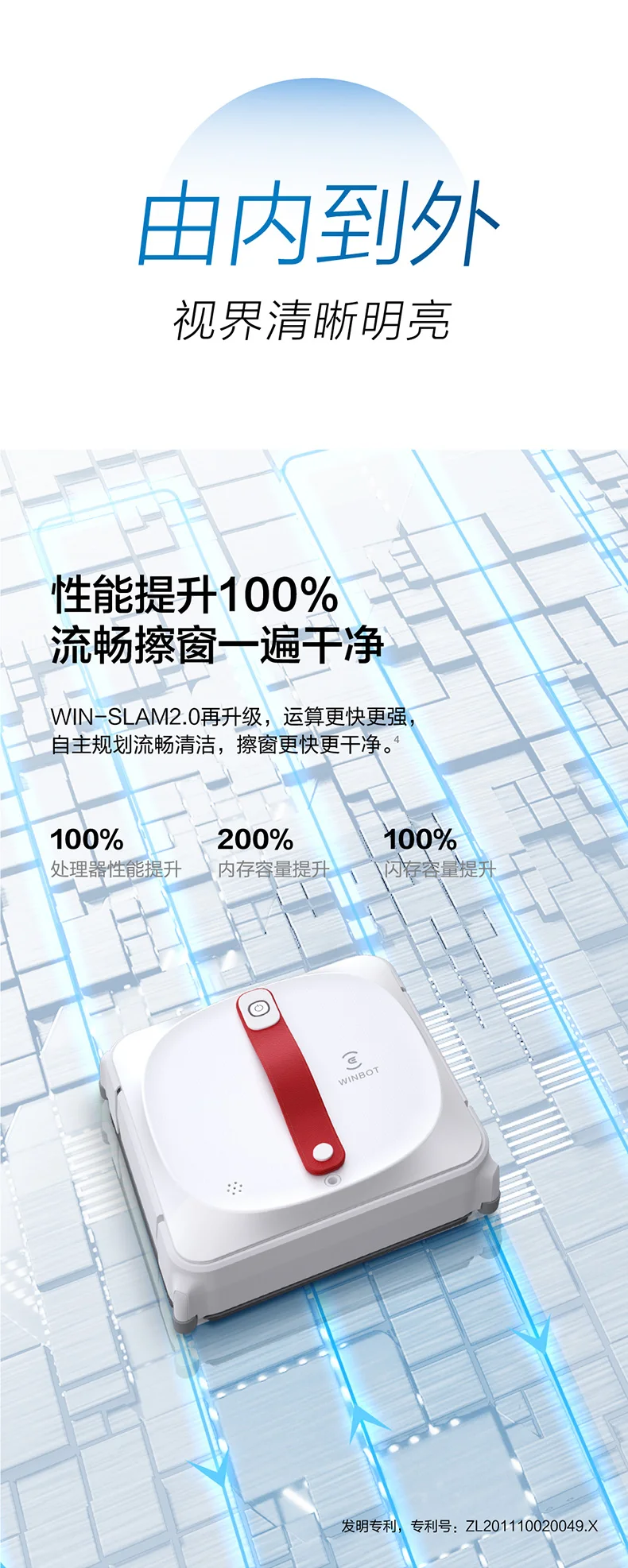 WINBOT закрепите себя на стекле с помощью усовершенствованного всасывающего вентилятора. Помимо безопасности, Мощное всасывание означает более жесткую протрку и лучшую чистку для ваших окон.