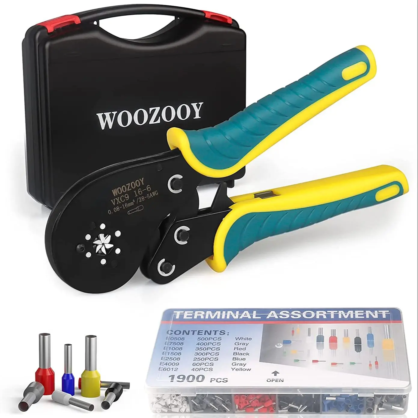 ♣Профессиональный набор инструментов для обжима: Емкость данного Шестиугольная ячеистая сеть щипцы является 0,08-16mm м² 28-5AWG с 1900 шт. провода терминалы + прочная коробка.