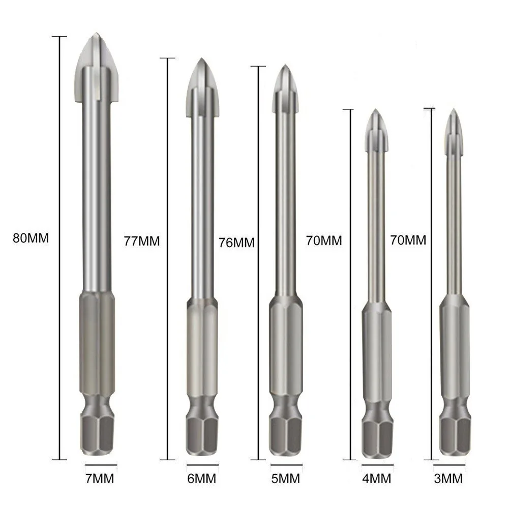 * Профессиональные сверла для стекла и плитки обеспечивают плавное и точное сверление керамической плитки, мрамора, тонкой железной пластины, зеркал и стекла. Не забудьте добавить воду или охлаждающую жидкость при сверлении.