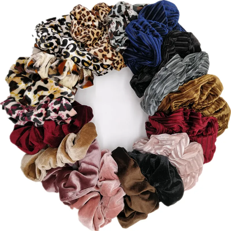 Женские бархатные аксессуары для волос с леопардовым принтом, держатель для конского хвоста, резинки, галстуки в горошек, тканевый головной убор с Санта-Клаусом