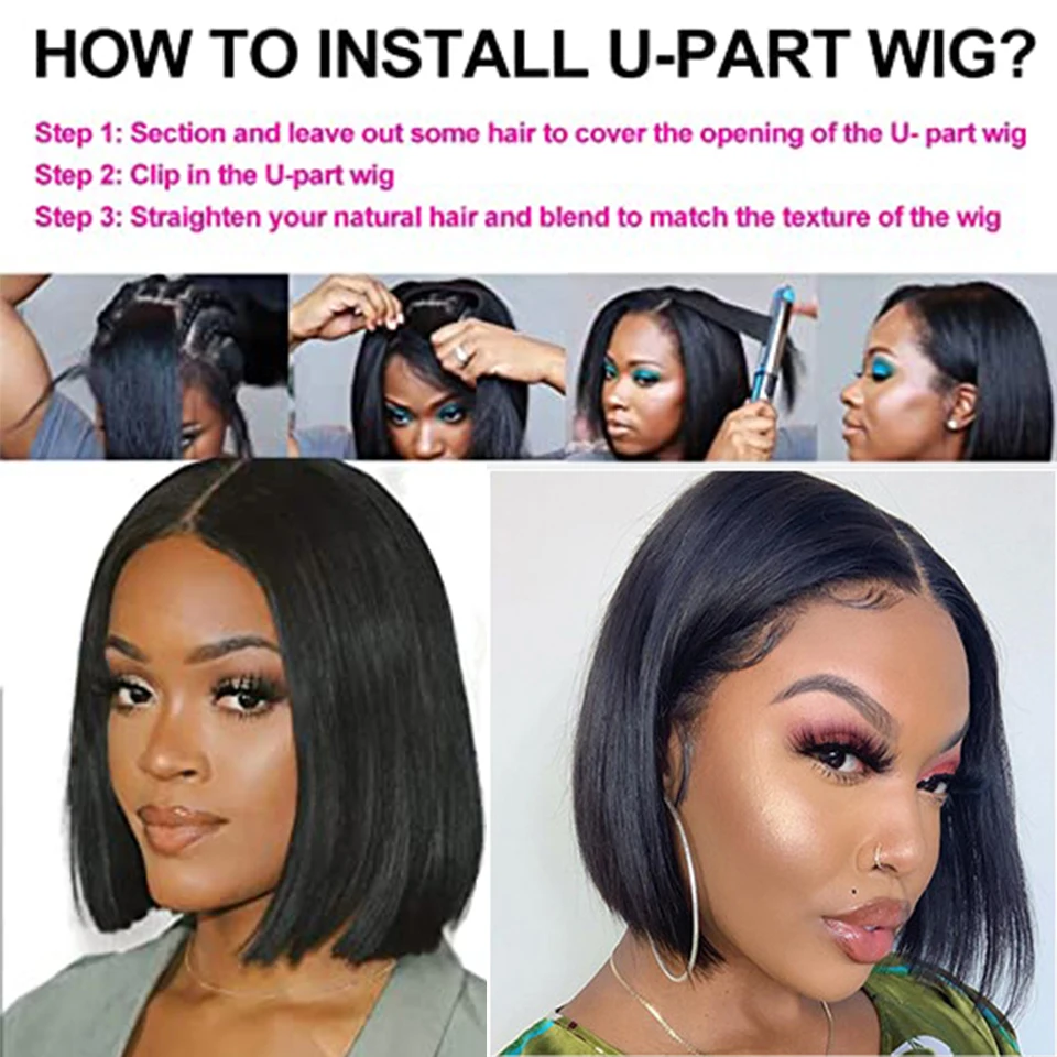 U-образный парик, человеческие волосы, короткие прямые человеческие волосы, парики средней части с волосами ребенка 8-18 дюймов, 150% плотность, Remy, не кружево