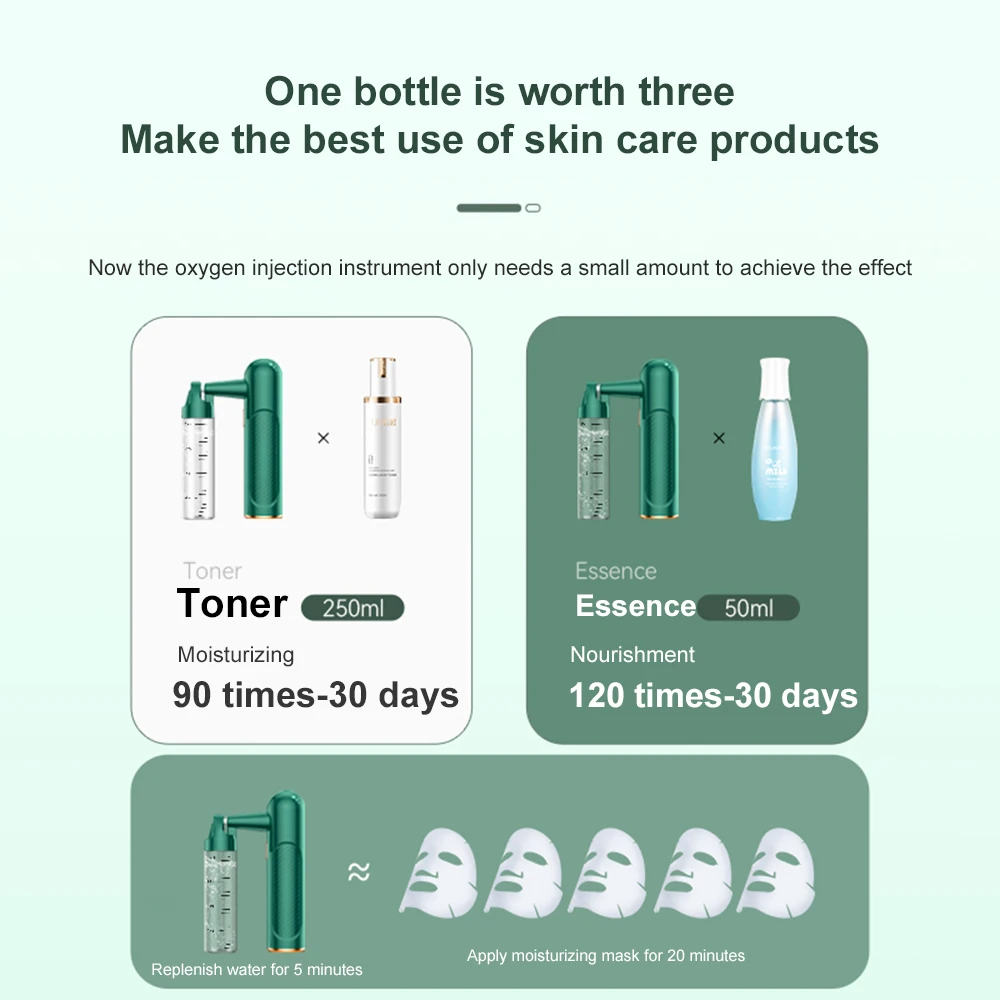 1. Отбеливание и увлажнение: прибор для инъекций кислорода использует инъекцию кислорода высокого давления для омоложения кожи, а водяной туман деликатен для удовлетворения нехватки воды в коже. Различные продукты по уходу за кожей или минеральная вода с метасиликатной кислотой могут быть добавлены для того, чтобы наполнять кожу медленным ощущением воды и светильник, который может не только увлажнять, долгосрочное использование может держать кожу блестящей, яркой и нежной.