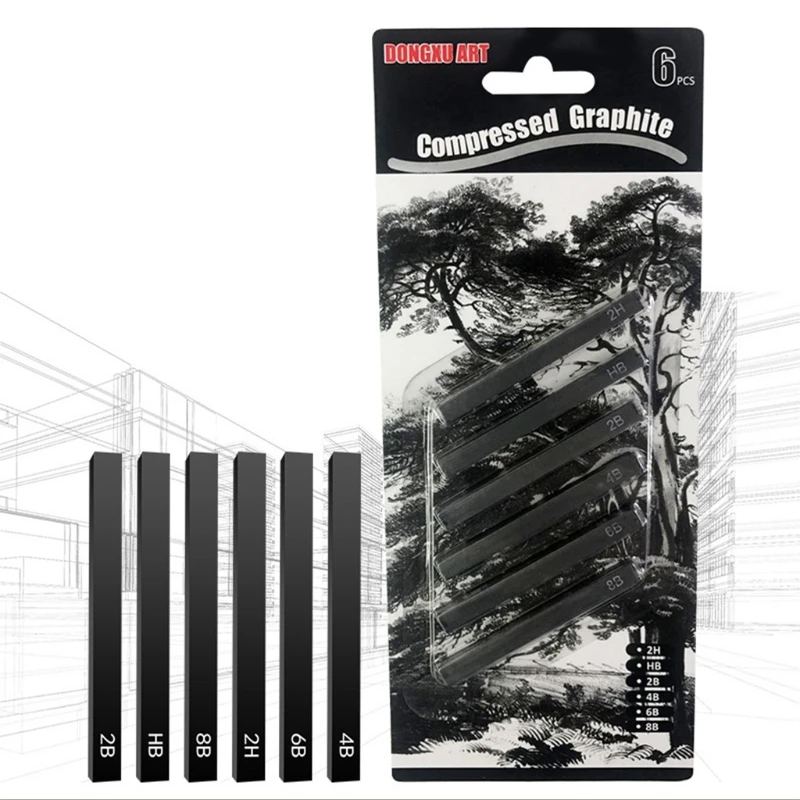 D5QC 6 шт. карандаши для набросков сжатые палочки для древесного угля HB 2B 4B 6B 8B 2H DIY Набор для рисования для начинающих художников