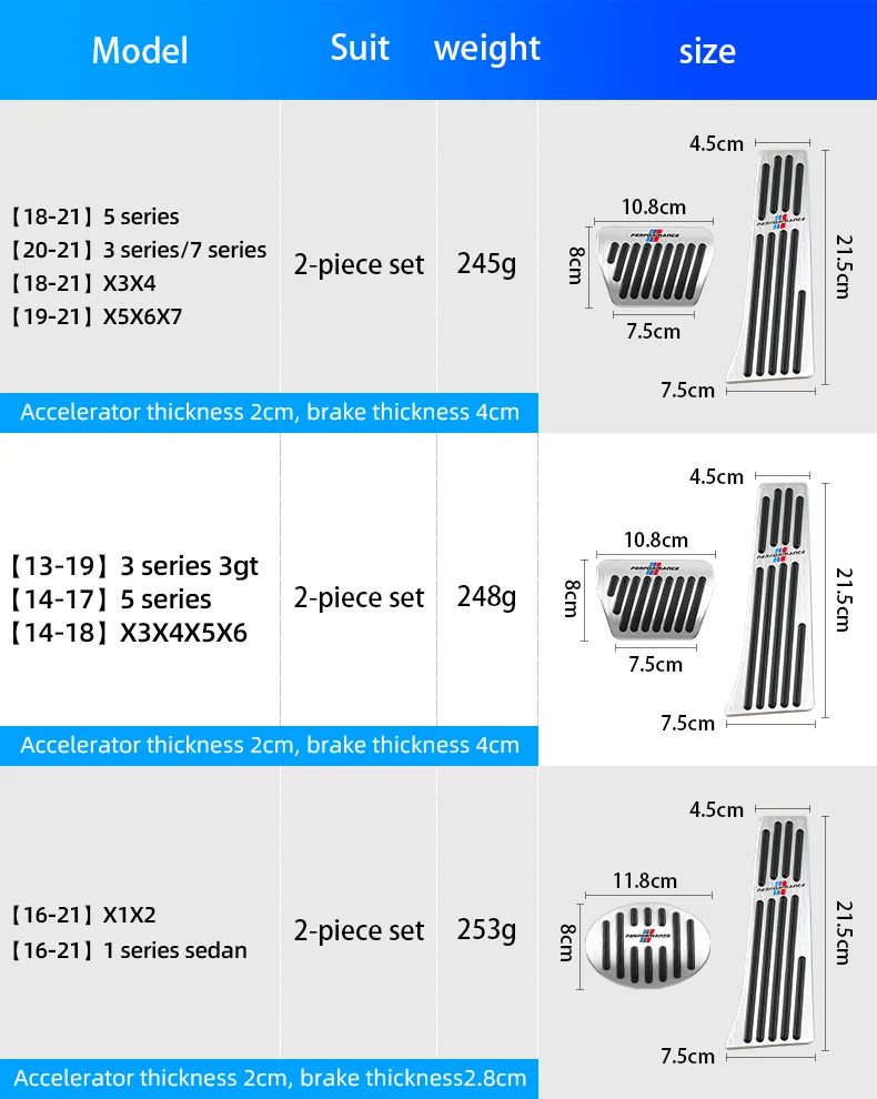 Пожалуйста, оставьте сообщение о том, какая у вас модель автомобиля (детали такие как: 3 серии F30 2015), pedel для других моделей также доступны, после получения вашей модели автомобиля, мы можем дважды проверить, что pedel правильный для вас.