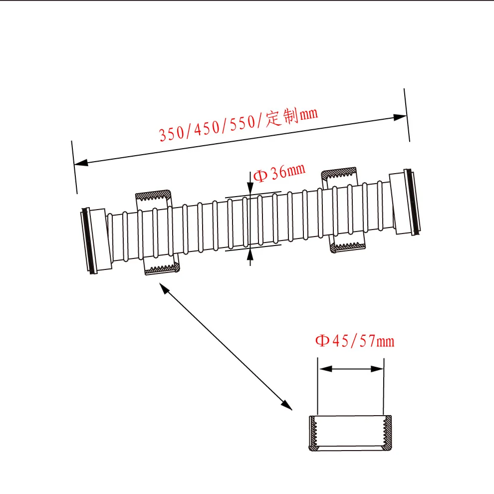 Размер: диаметр дренажной трубы-36 мм, Длина дренажной трубы-450 мм, внутренний диаметр шнека-45 мм.