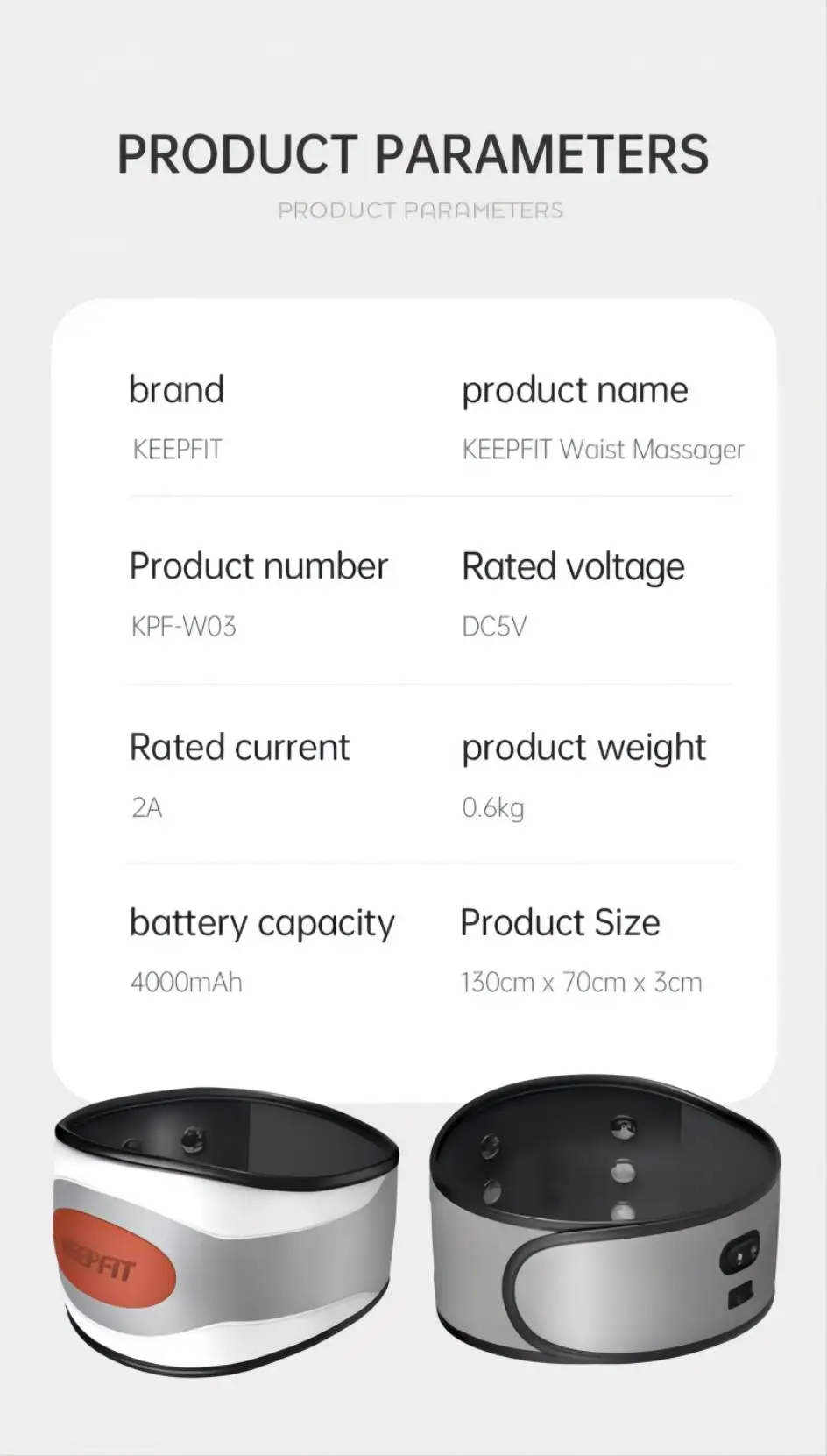 Электрический нагревательный ремень KEEPFIT сочетает в себе массаж, поддержку и тепло. Пояс для удовлетворения потребностей различных waists. Она жесткая и гибкая, эффективно снимает давление на талию. Предназначен для поясничных мышечных травм и поясничных межпозвонковых дисков.
