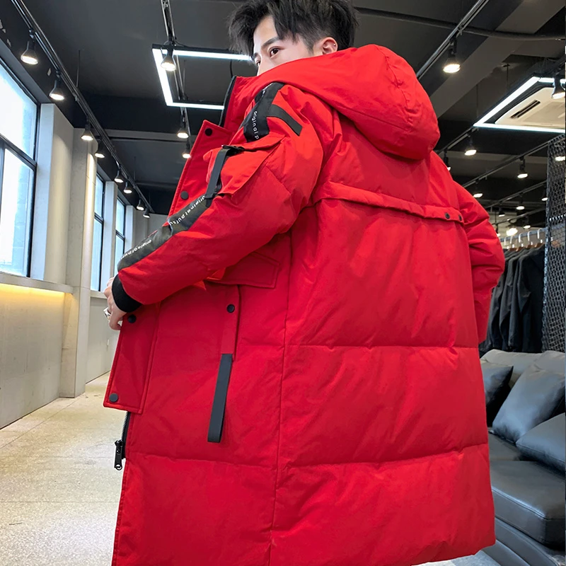 Куртка мужская зимняя Длинная с капюшоном плотный теплый пуховик черная парка