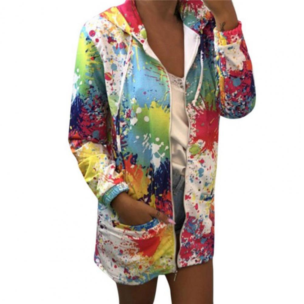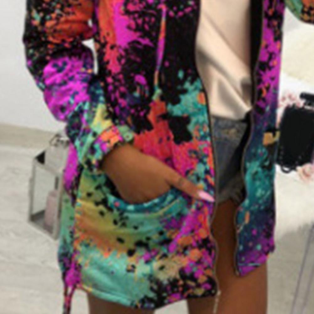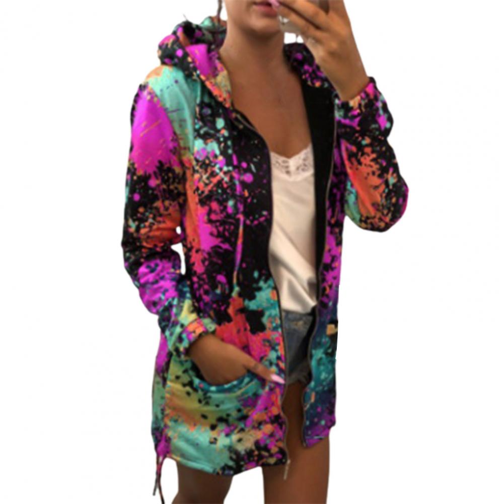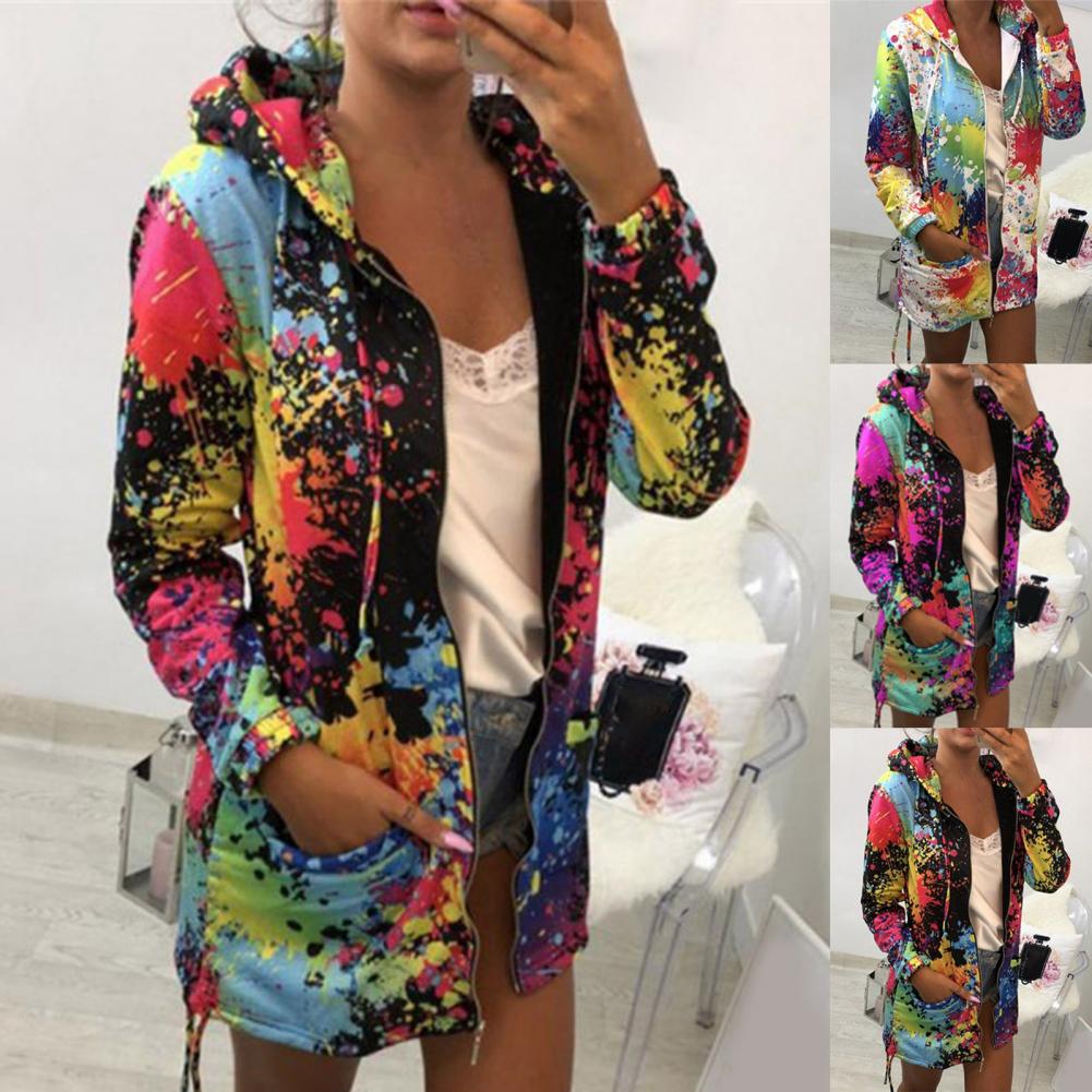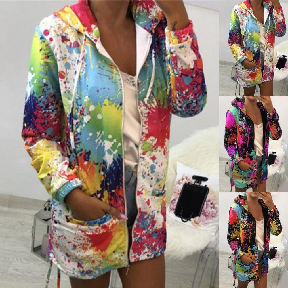 Осенняя Женская куртка с принтом «Tie Dye», легкая ветровка на молнии с капюшоном, повседневные толстовки с карманами, верхняя одежда, пальто, худи