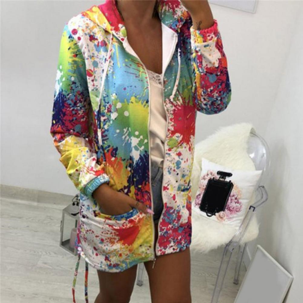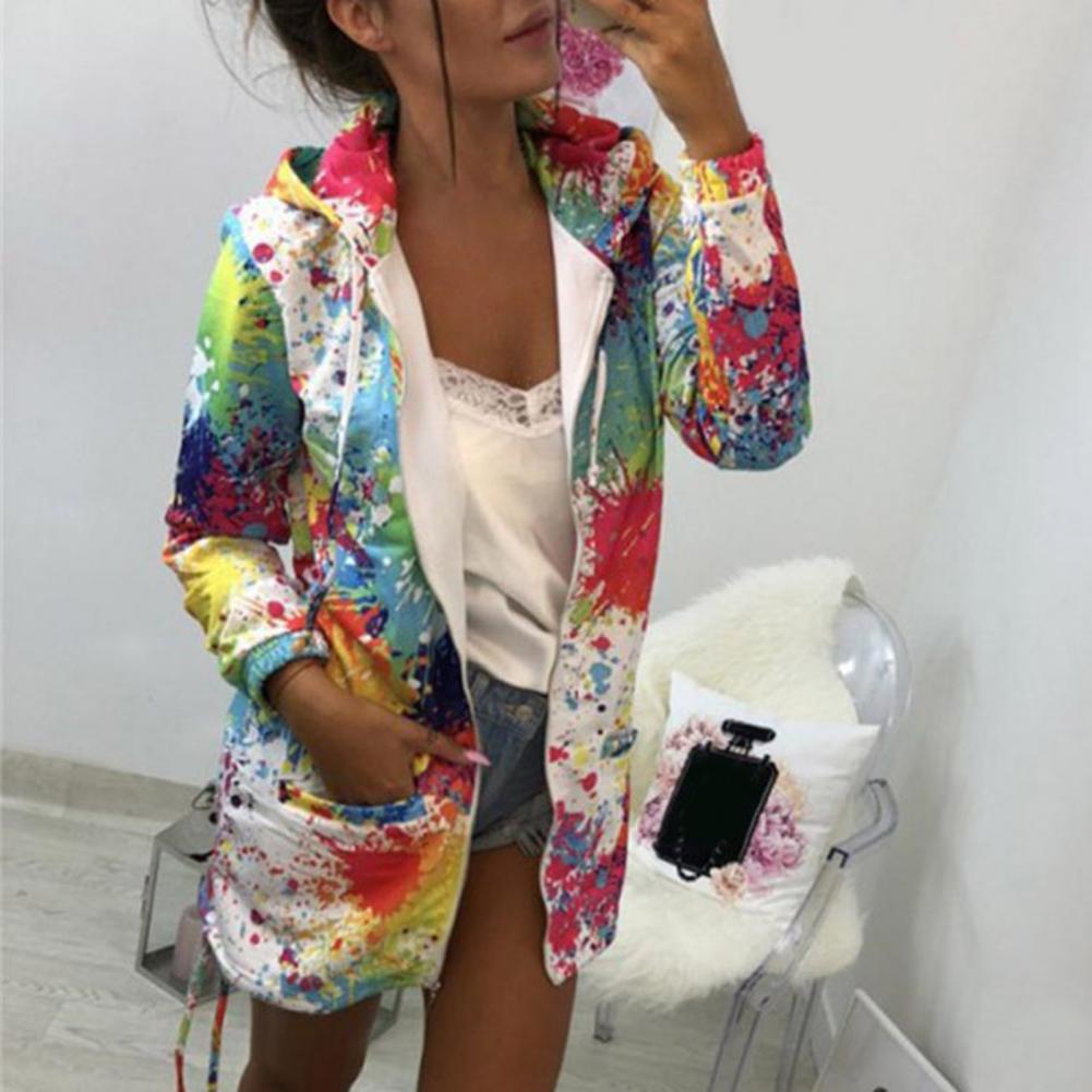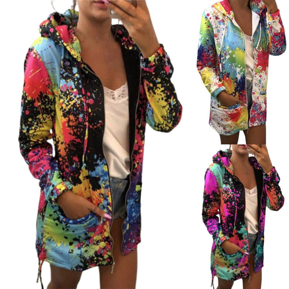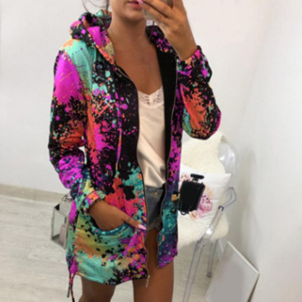 Осенняя Женская куртка с принтом «Tie Dye», легкая ветровка на молнии с капюшоном, повседневные толстовки с карманами, верхняя одежда, пальто, худи