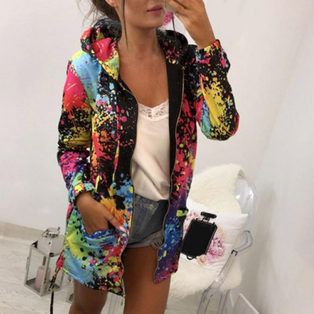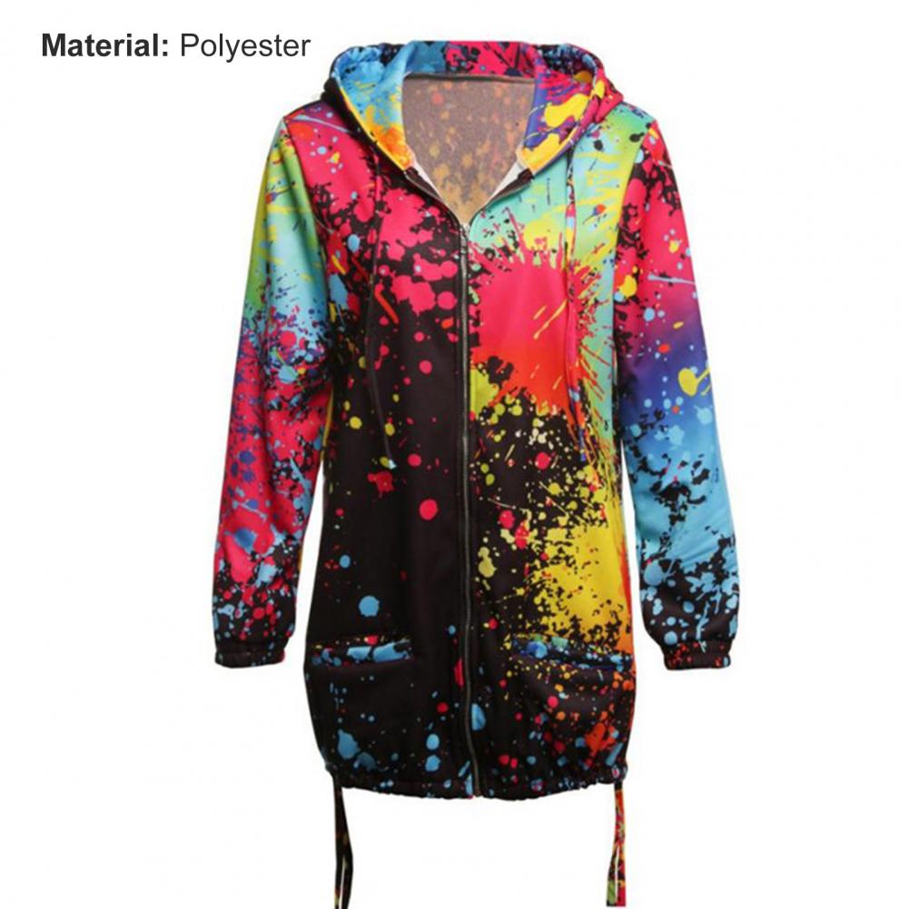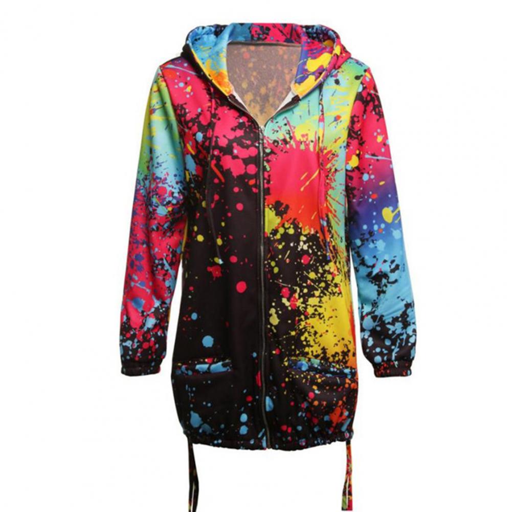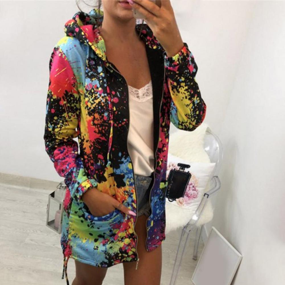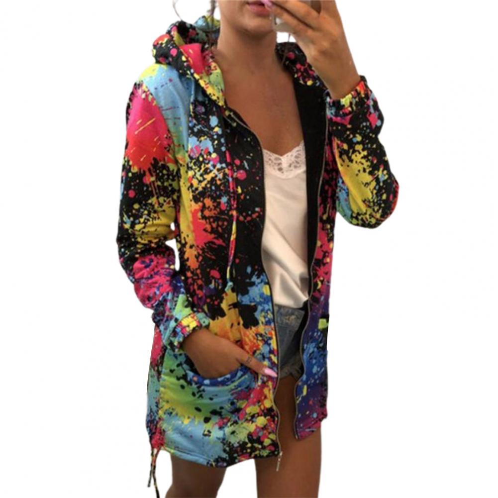 Осенняя Женская куртка с принтом «Tie Dye», легкая ветровка на молнии с капюшоном, повседневные толстовки с карманами, верхняя одежда, пальто, худи