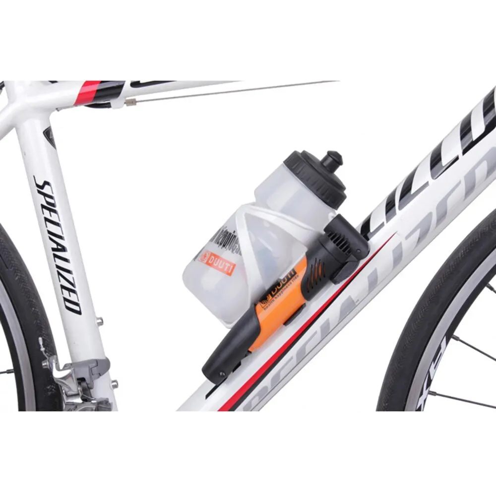 Также можно прикрепить к велосипеду в местах крепления бутылочной клетки.