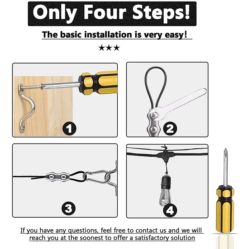 Наш светильник висящим комплектом может использоваться в различных формах таких как висячая веревочная светильник s для романтического вечерние, фотографий или какие-либо висит. И вы можете проектировать различные типы подвесок освещения для улучшения визуального эффекта в соответствии с макетом вашего двора. Используйте свое воображение и получайте удовольствие от DIY.