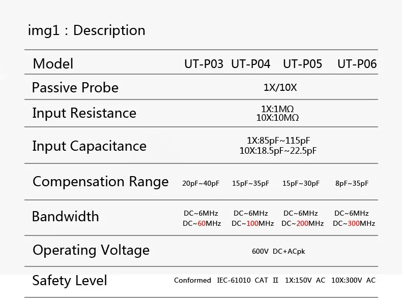 Рабочее напряжение: 1 ×:300Vpp,10 ×:600Vpp