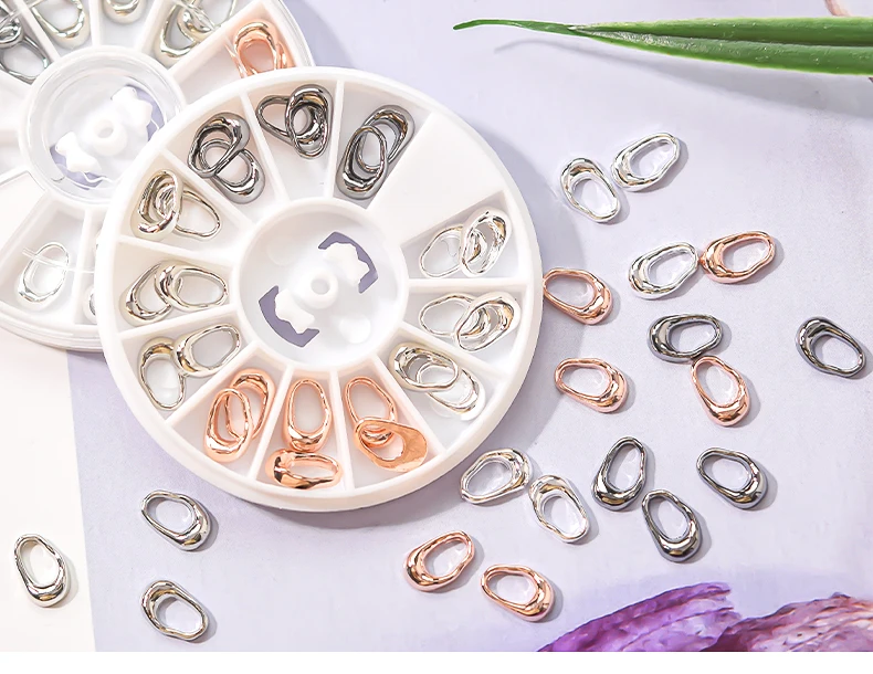 12 цветов/колеса сплава нейл-арта украшения нерегулярные полое кольцо из розового золота 3d Новое поступление Подвески ногтей шпильки "сделай сам" набор для маникюра в японском