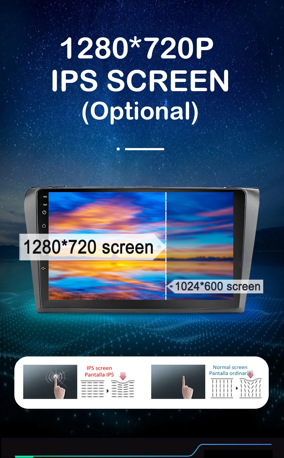Это Радио имеет два вида экрана-1024*600P HD экран и 1280*720P супер HD экран. Экран 1280*720 ярче и ярче обычного hd-экрана. Вы можете выбрать тип по вашему желанию.