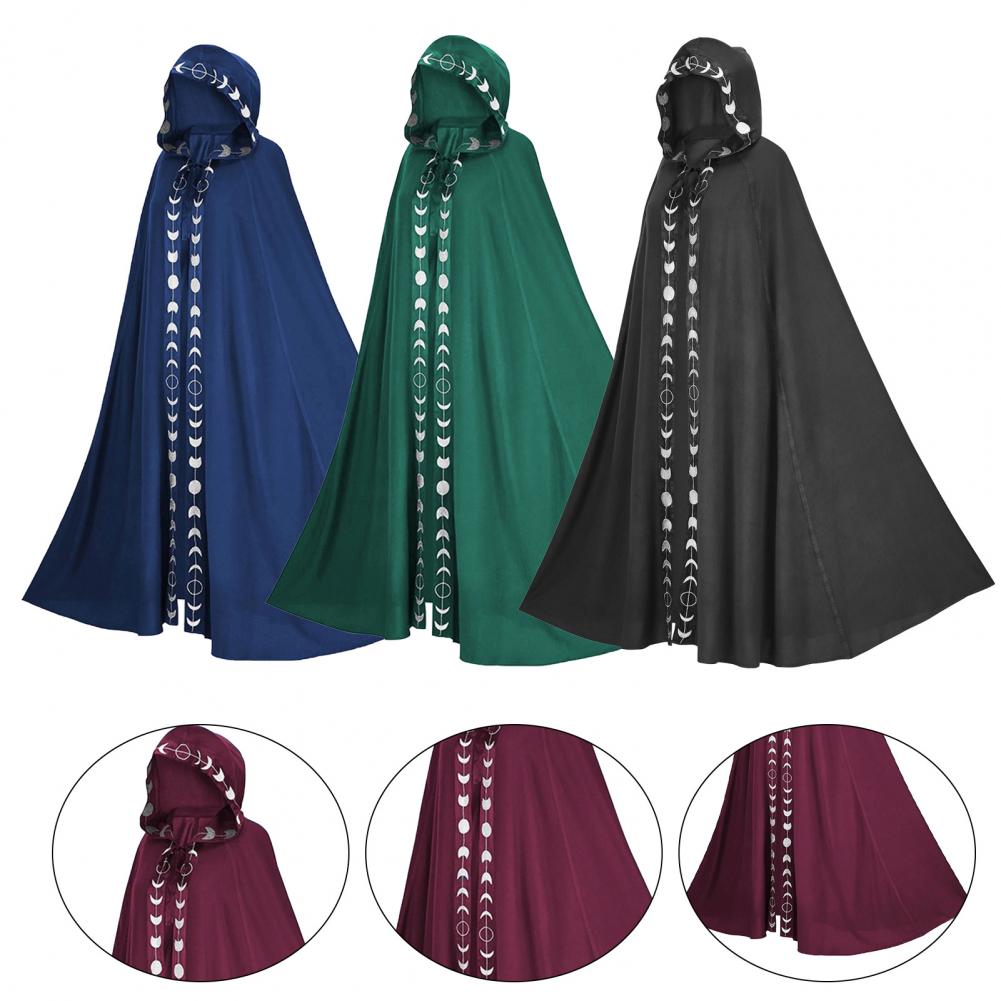 С капюшоном, очень длинным, со шнуровкой и принтом Луны, плащ для взрослых на Хэллоуин поможет вам быть наиболее заметными в вечерние.