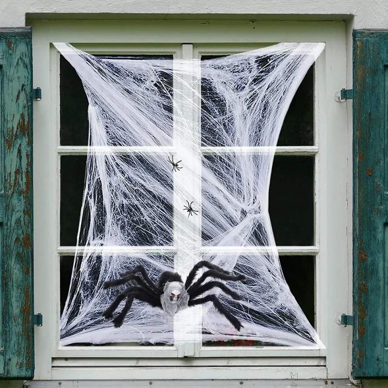 В том числе: реквизиты для пауков * 1, 20 граммов белой хлопковой паутинки * 1, мягкие реквизиты для пауков * 2