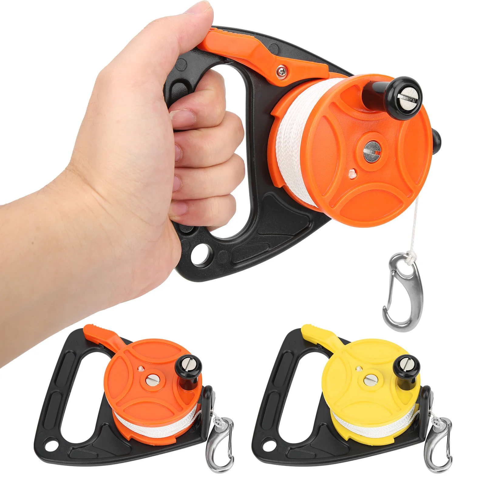 Многофункциональная катушка для дайвинга SMB, якорь для Каяка с прочной белой нейлоновой линией 46 м/150 футов и двойной оснасткой болтаБольшой палец/палец пробка для управления линией, очень удобно.Крепится с большой ручкой катушки для облегчения оттягивания линии.Компактный, легкий, портативный, прочный, удобный для переноски и использования.Идеально подходит для подводного дайвинга/пещеры/крушения дайвинга, дайвинга, подводного плавания, каякинга и многого другого.Параметры