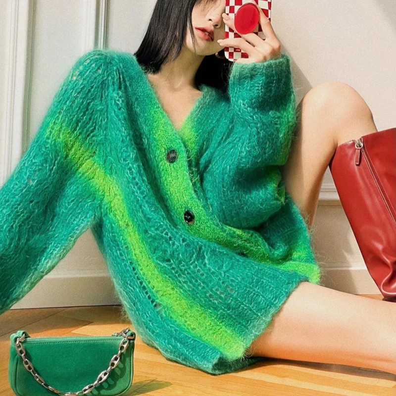 Кардиган женский трикотажный в рубчик элегантная повседневная Милая Модная