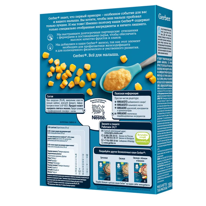 Gerber knows that the first food is a special event for you and your baby. You want your baby to try only the best. And so are we! That's why Gerber porridge contains only specially selected ingredients and nothing superfluous.