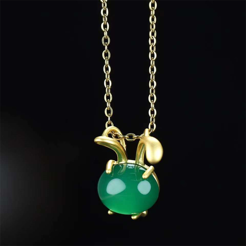 Ожерелье с подвеской в виде кролика из натурального нефрита | Украшения и