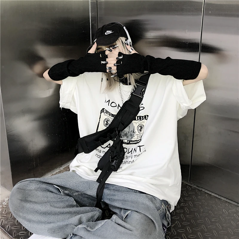 Перчатки женские в стиле панк готические черные митенки с разрезами без пальцев