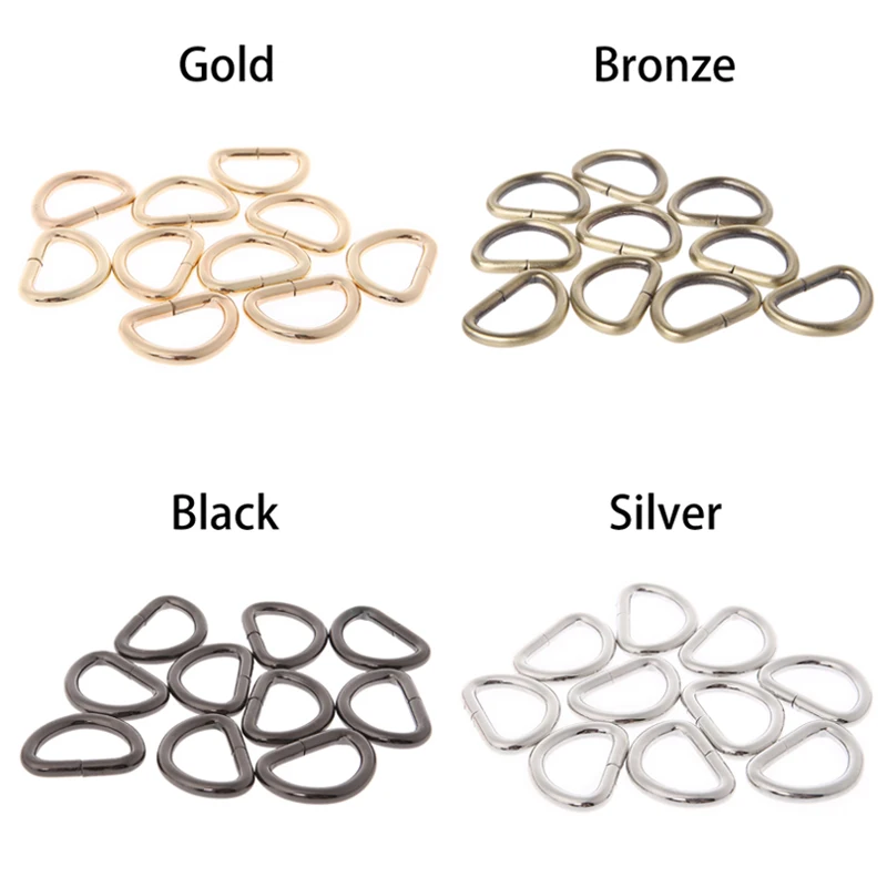 10 шт./лот 13/16/20/25 мм D кольца ремешок Пряжка внутренняя ширина металлическая полукруглая форма для сумки ремешок для ремня кошелек DIY сумки аксессуары