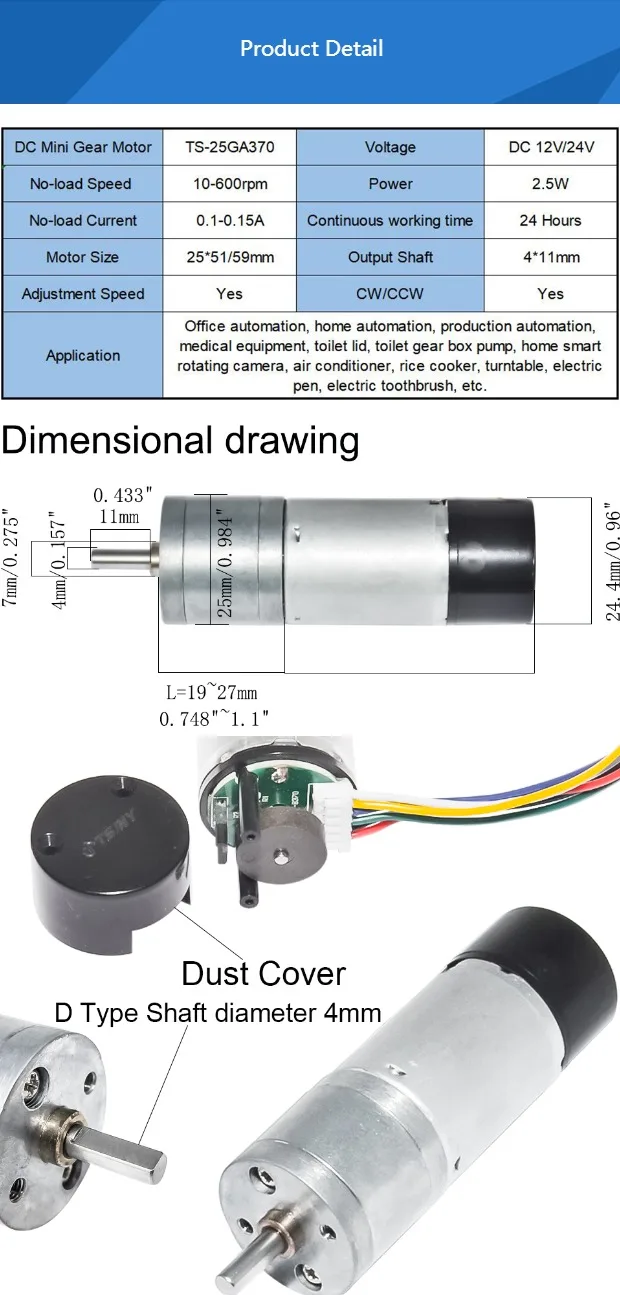 Электрический двигатель с датчиком 12/24V 10/15/25/35/60/80/130/150/300/600 об/мин Скорость DC Шестерни мотор DIY RC Хобби 25GA370