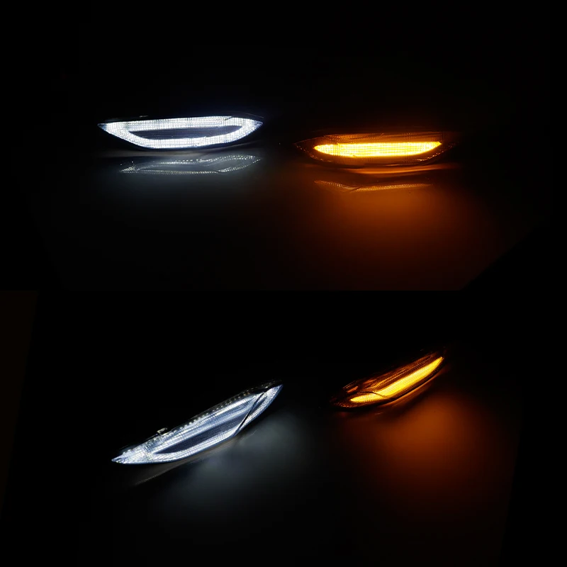 В отличие от обычных на рынке может светильник иться только янтарным цветом, наш двухцветный переключатель на светодиодные, боковые, габаритные фонари ламсветильник может светильник ться ксеноновым белым светом в качестве парковочных/боковых габаритных огней во время вождения и мигать янтарным для сигнала поворота.