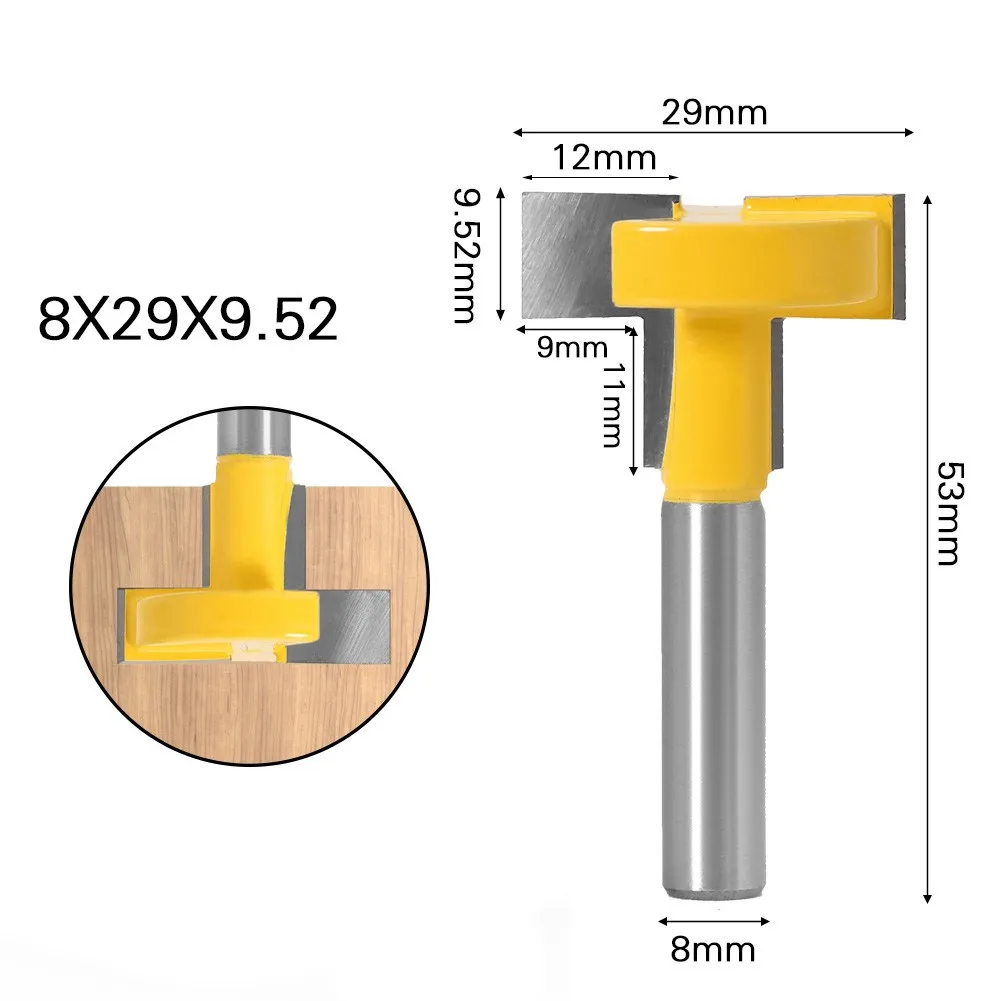 * Фрезы для резки Т-образных направляющих Т-образных швов, с 1-1/16 "шириной * 5-16" высокими головками болтов и толщиной вала до 3/8 "; может также использоваться для изготовления настенных досок