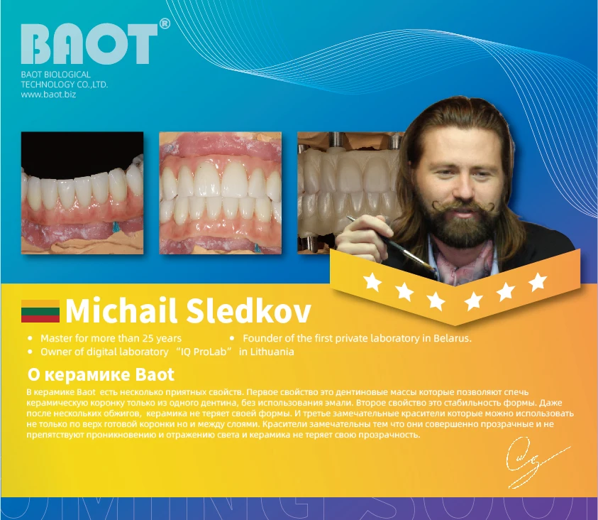 В настоящее время стоматологический фарфор BAOT доступен в более чем 70 странах и регионах.
