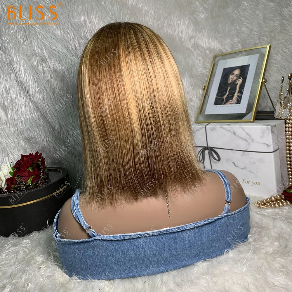 Bliss Straight Bob Wig Human Hair Wigs With Bangs Remy Full Machine Made Cheap For Black Women | Шиньоны и парики