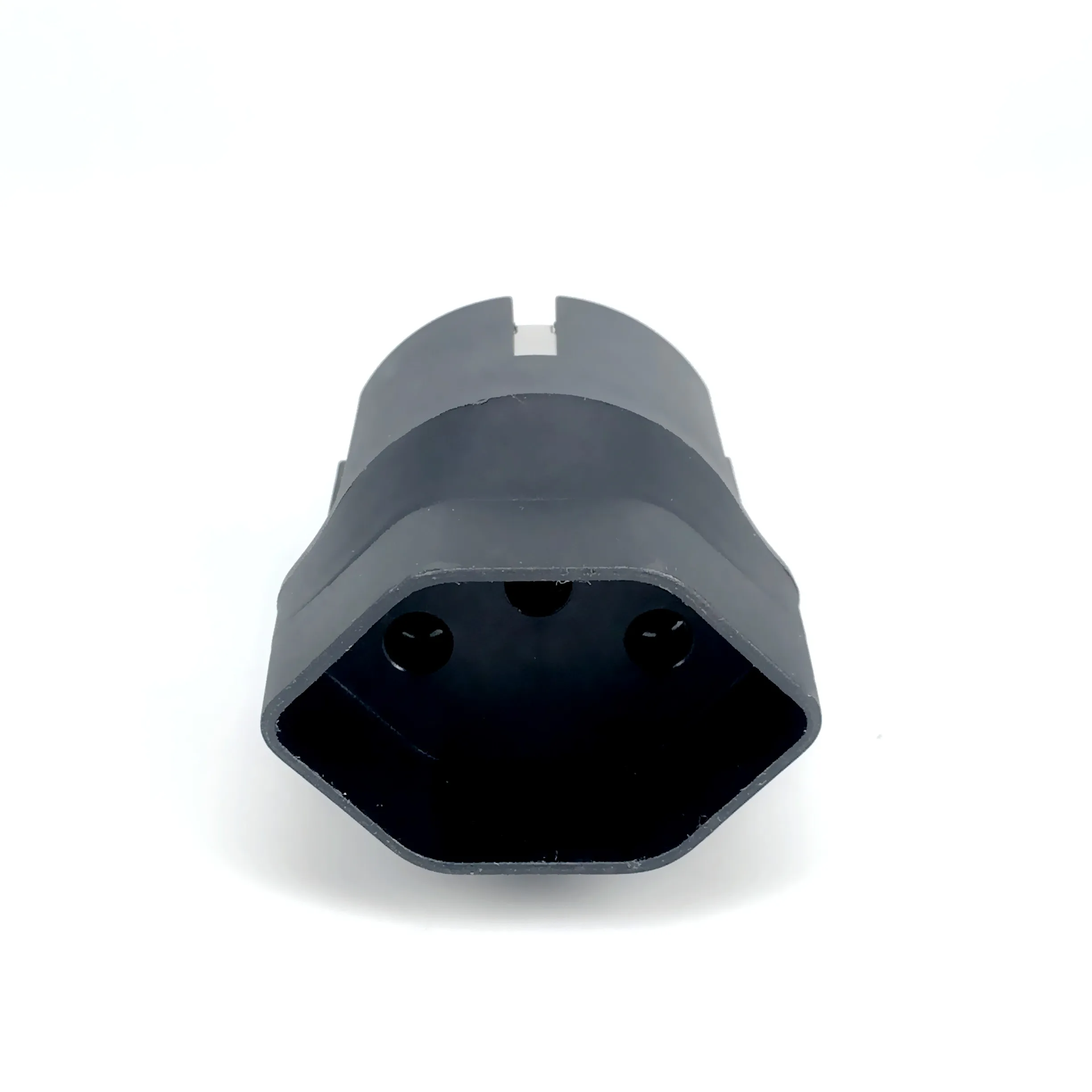 Номинальный ток: 10AНоминальное напряжение: 250 ВЭффективная нагрузка: 2,5 кВтМатериал корпуса: АБС Защита окружающей среды огнестойкийВходная часть (вилка): немецкие Стандартные два круглых штифтаВыход (вилка) часть: Швейцарский Стандарт три круглых контактаХарактеристика: самоблокирующаяся внутренняя структура.(Примечание: самоблокирующаяся внутренняя конструкция вставляется в штепсельную вилку, не вытягивается, используйте осторожность.)Цвет: черныйСертификация: CE, ROHSПрименение: путешествие, домПосылка включает в себя:Отгрузка: