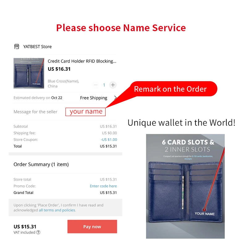 Пожалуйста, укажите свое имя в течение 24 часов или мы добавим имя получателя на бумажнике.