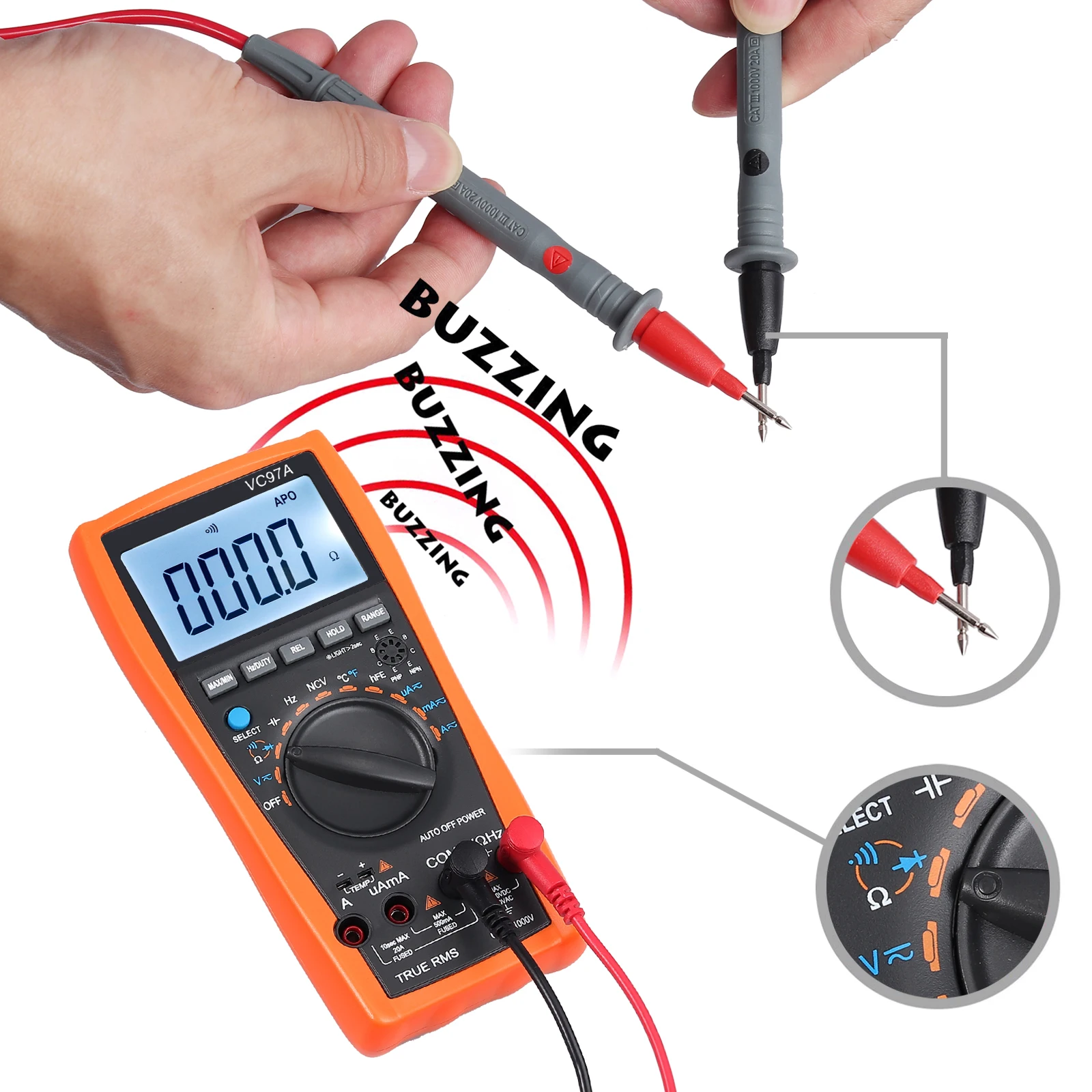Этот цифровой ЖК-мультиметр с обновленным автоматическим диапазоном VC97 обладает сильным антимагнитным покрытием и защитой от помех, высокой точностью и высокой производительностью. Его можно использовать для измерения постоянного и переменного напряжения, переменного и постоянного тока, сопротивления, емкости, частоты, бесконтактного измерения напряжения переменного тока, температуры, диода и непрерывности цепи.
