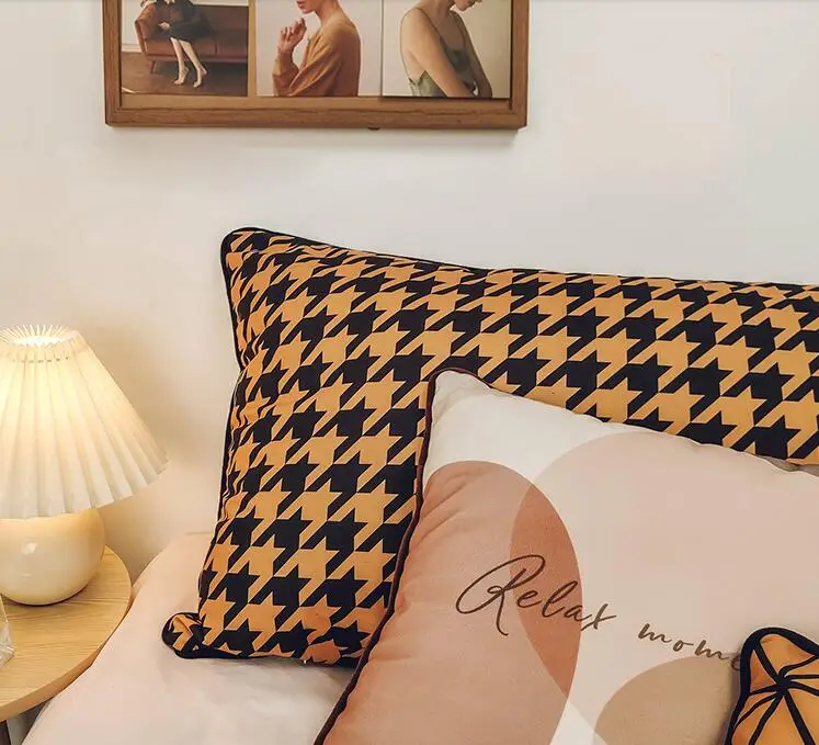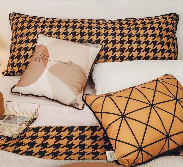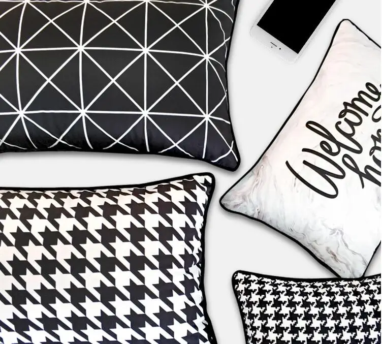 Подушечный чехол ручной работы с элементами скандинавской вышивки и атласными лентами для декорирования дома и гостиной на белом диване размером 50x30 и 45x45 см.
