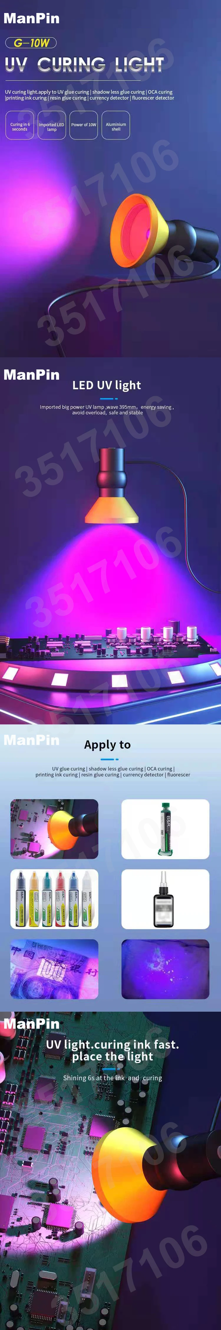 УФ отверждающая лампа 395 мм волна 10 Вт паяльная масляная паста Смола тени без клея экран детектор пыли светодиодный светильник для ремонта телефона