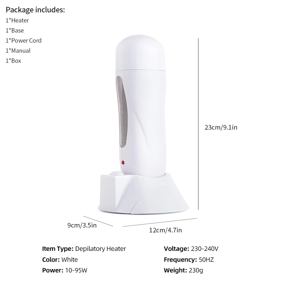 - Совместим с рулоном на воске. Вы можете просто вставить один в нагреватель, нагревать его, подождать несколько минут, а затем нанести его непосредственно на кожу. Дополнительный контейнер не требуется, и воск может быть применен точно, не вызывая каких-либо отходов.