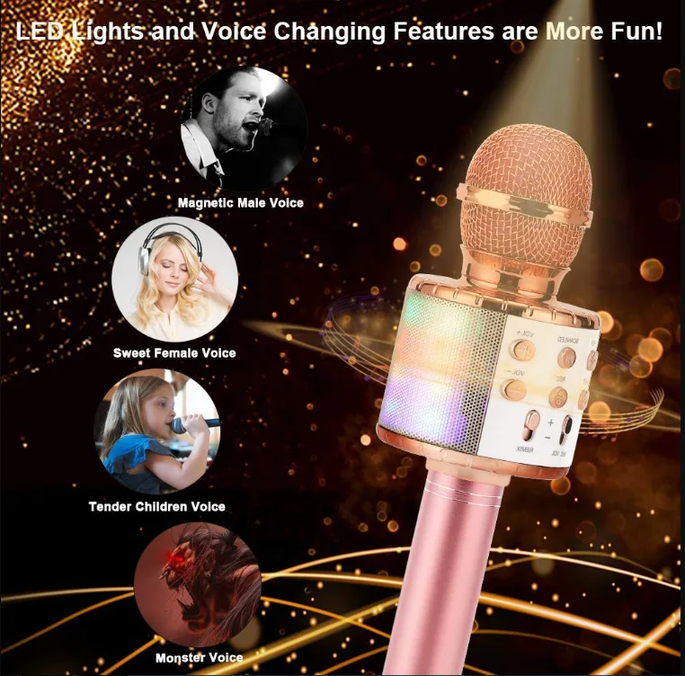 ♫【 4 в 1 караоке микрофон】 Портативные Ручные беспроводные микрофоны можно использовать как микрофон, bluetooth-динамик, громкоговоритель, диктофон. Мини домашний KTV для воспроизведения музыки и пения в любое время.