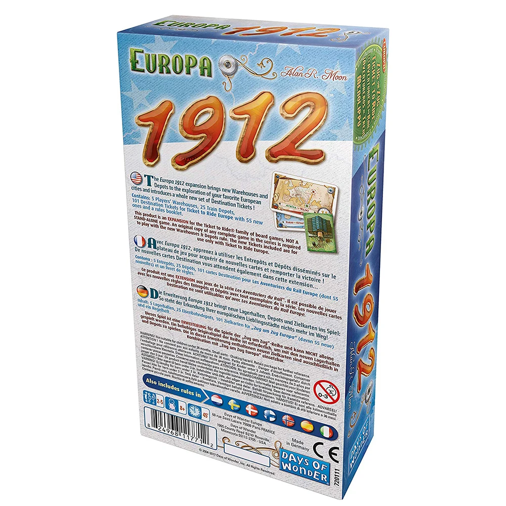 В том числе: 1 игровая карта, 225 автомобилей, 144 карты, 5 деревянных маркеров, 1 буклет правил