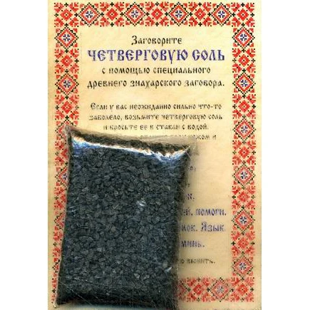 Соль четверговая знахарская от сибирской целительницы Натальи Ивановны Степановой. Четверговую соль готовят один раз в году - в ночь со среды на четверг Страстной недели или утром в Чистый четверг. Запекается такая соль в русской печи, с добавлением ржаной муки и листьев белокочанной капусты.