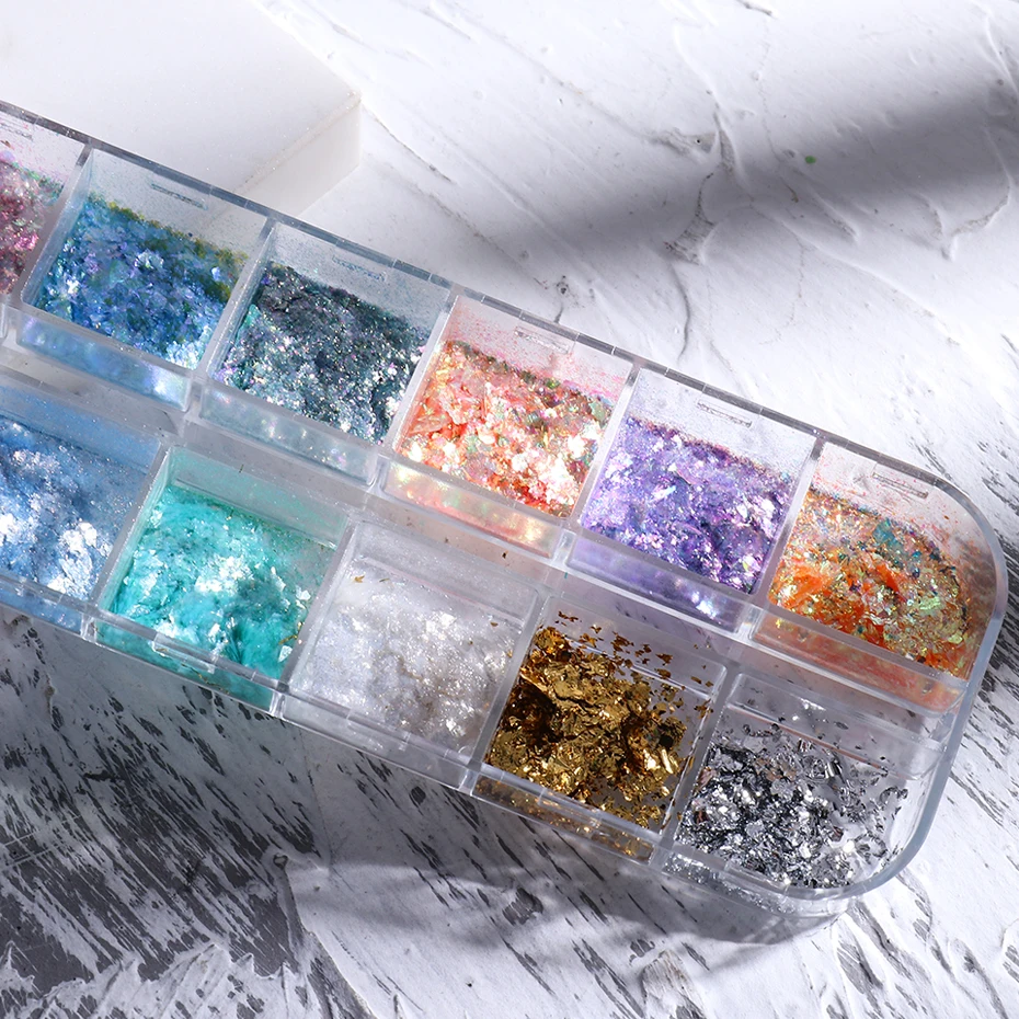 12 балок Аврора Единорог дизайн ногтей блестки смешанные нерегулярные ногтей порошок Блестки Русалка чешуйки ногтей голографические маникюрные украшения