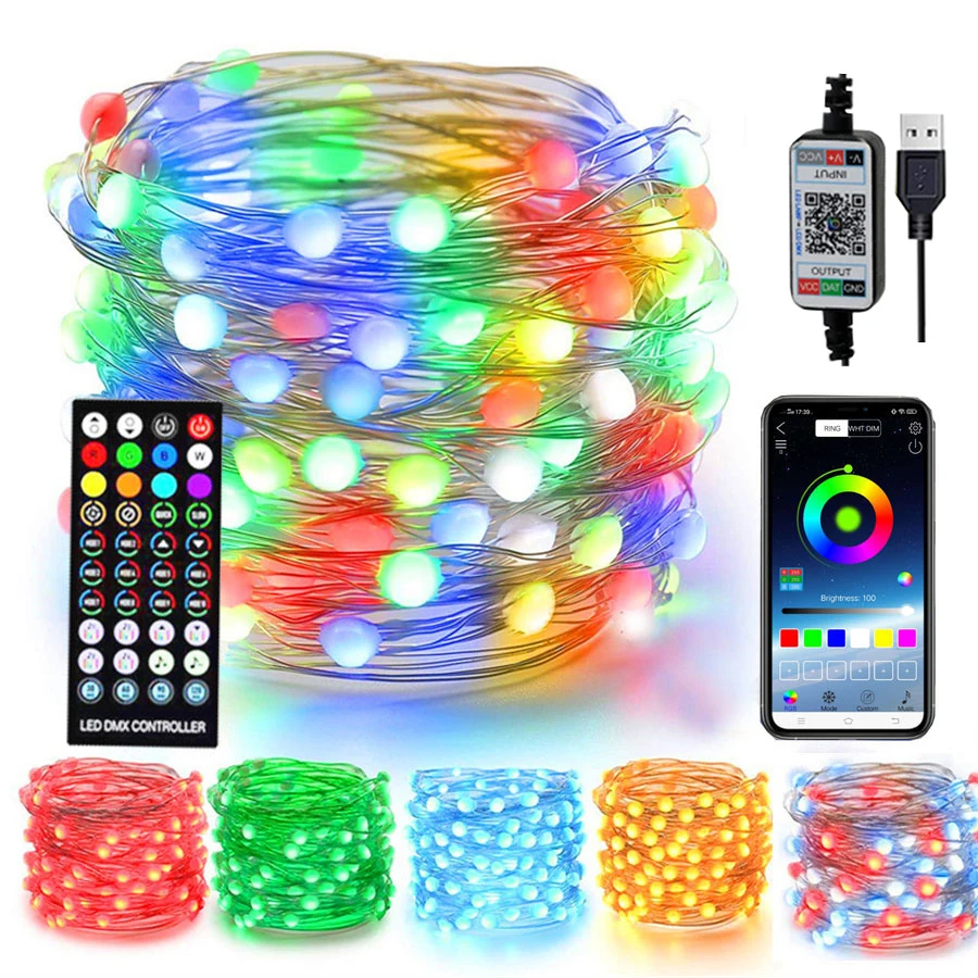 100/200LED Смарт сказочные гирлянды USB Bluetooth рождественские мерцающие огни с пультом многоцветные меняющие светящиеся огни