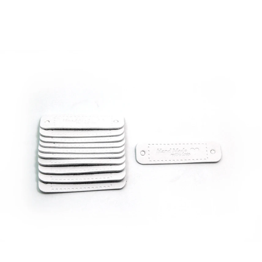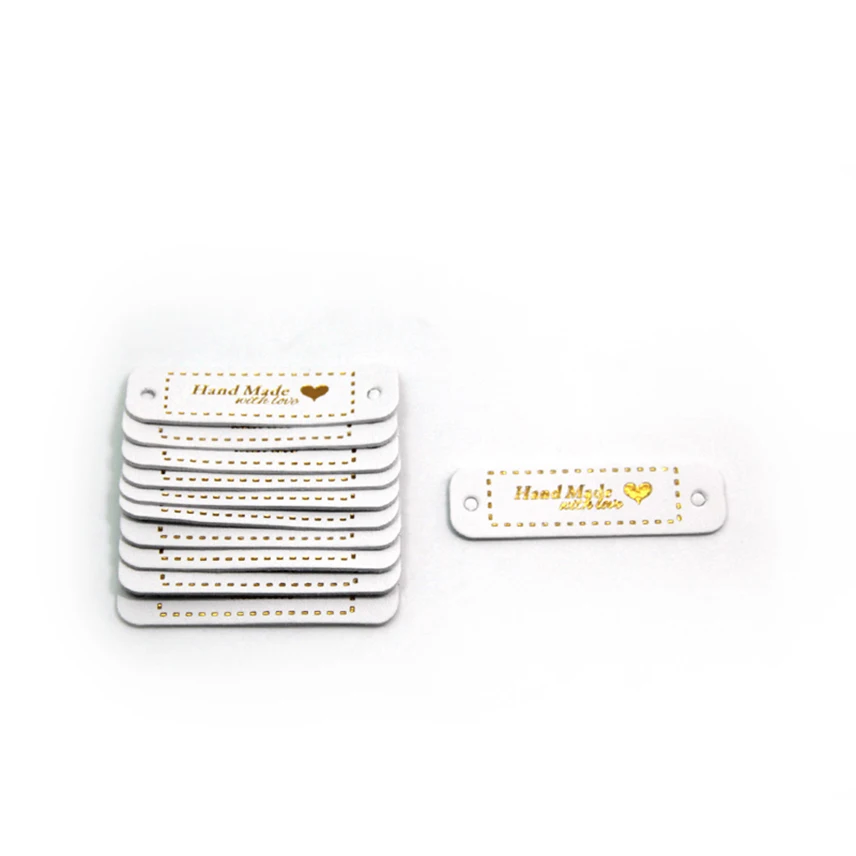 20Pcs Handmade Labels Bronzing Love Garment PU Leather Hand Made Tags for Jeans Bags Shoes Hats DIY Sewing Supplies