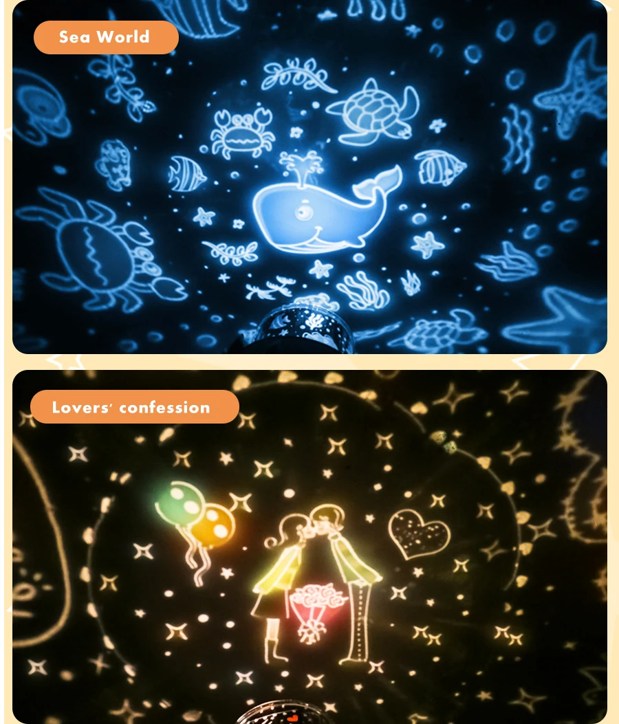1. Многофункциональный -- может использоваться в качестве прожекторной лампы при снятии защитного оттенка, также может использоваться как ночной Светильник, когда надевается защитный оттенок, может сделать музыку, поворачивая часовой механизм2. Шесть наборов фильмов --- с волшебной вселенной, звездной звездой, лошадью, лося, океаном, днем рождения. Таким образом, красивый светильник будет проектироваться на потолок или стену3. Пять световых эффектов-белый, синий, желтый, комбинированный, быстрыйВспышка