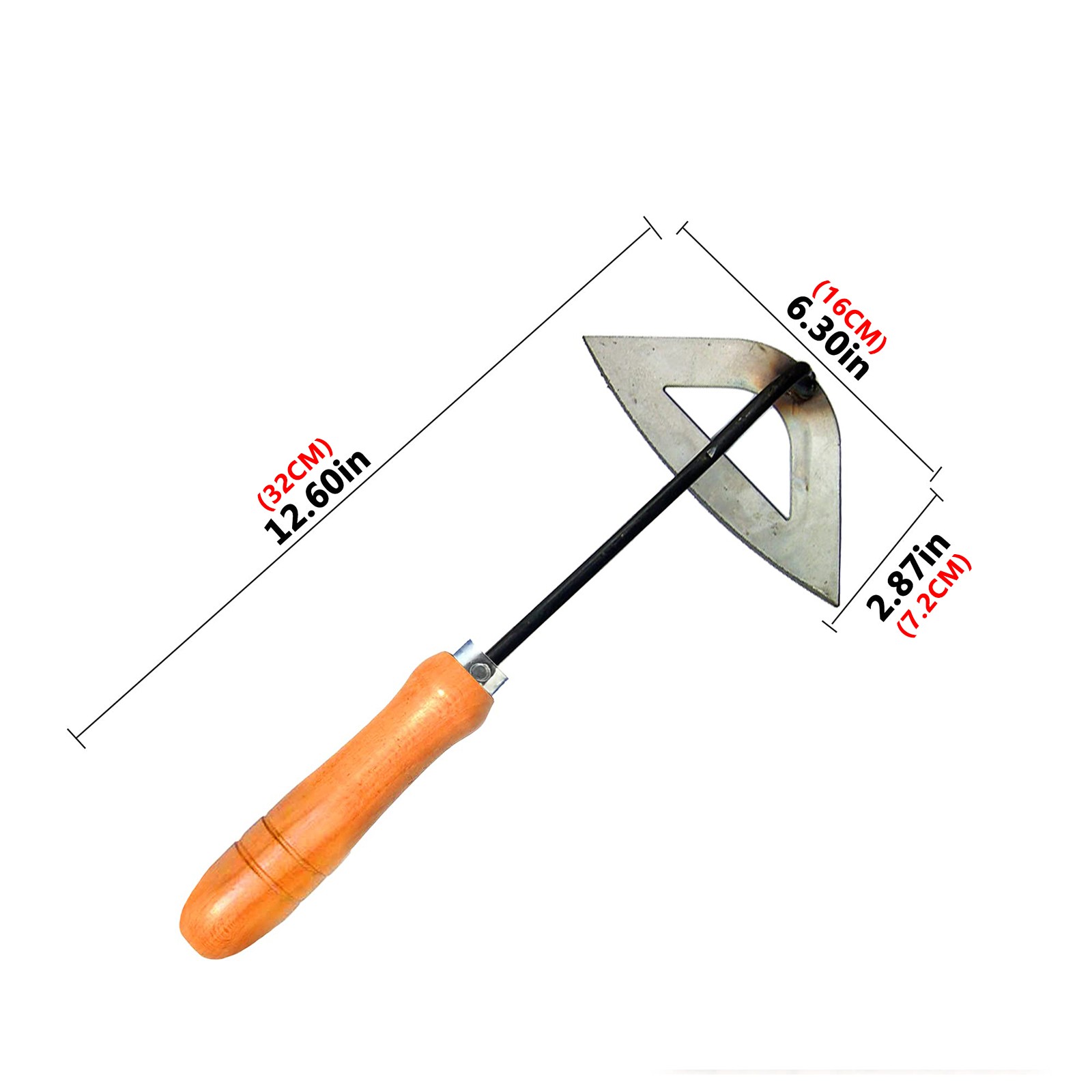 Note: This handmade hoe is very sharp. Protective gloves must be worn during use to avoid injury. In addition, it must not be used for children to play, otherwise it will be very uncomfortable.