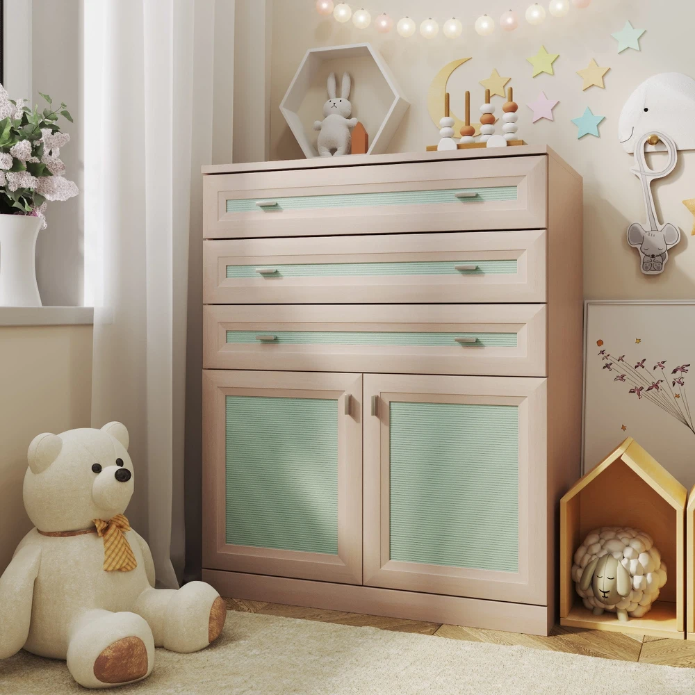 Широкий комод «Герда» со вставками из натурального бамбука на фасадах органично впишется практически в любой интерьер детской или молодёжной комнаты. Вместительная комбинированная модель поможет навести порядок в детских вещах и игрушках.