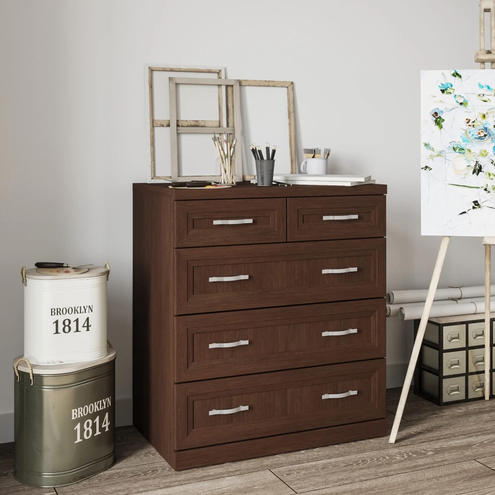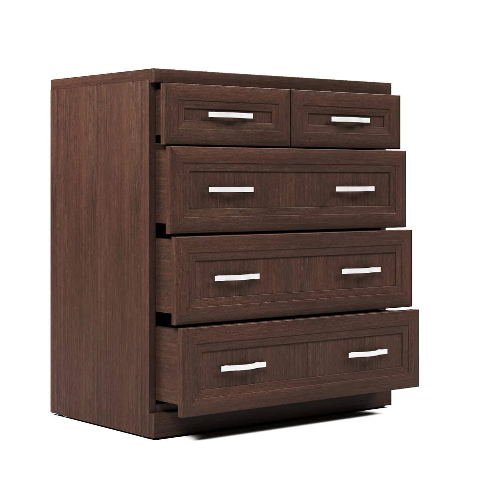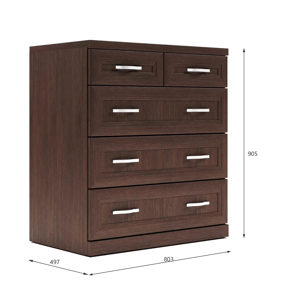 Пять ящиков. Два верхних малых ящика удобны для хранения аксессуаров и мелочей. В трех нижних широких ящиках сложенная одежда и белье всегда будут в порядке и под рукой.
