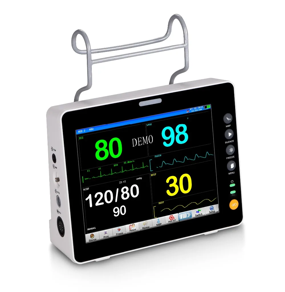 Стандарт: 3/5-свинцовый ЭКГ, RESP, SpO2, NIBP, PR, 1-TEMP