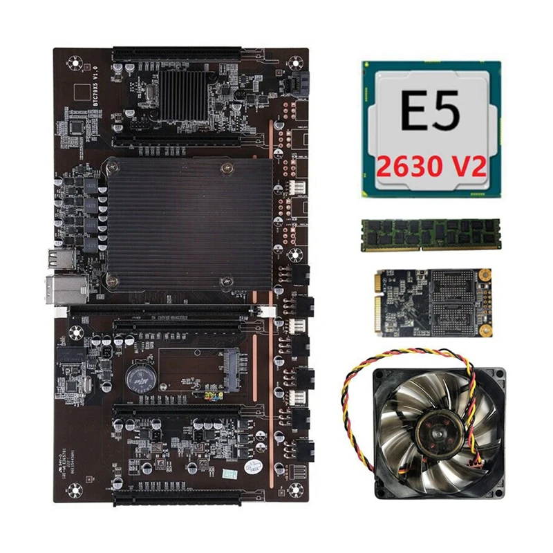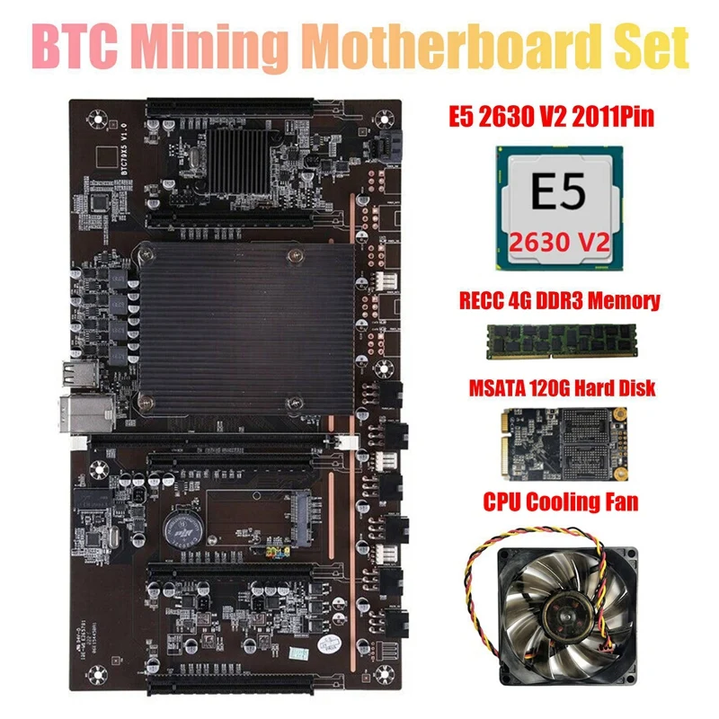 Brand new X79 BTC 5 Card Slot Mining Board+E5 2630 V2 2011 Pin CPU+RECC 4GB DDR3 Memory+MSATA 120G Hard Drive+CPU Cooling Fan Kit